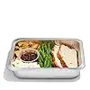 Turkey (turkey [turkey breast, sea salt], salt & pepper seasoning [organic black pepper, sea salt]), Green Beans (green beans, expeller pressed canola oil, salt & pepper seasoning [organic black pepper, sea salt]), Mashed Potatoes (potatoes, whole milk, butter [sweet cream, salt], salt, nisin preparation), Stuffing (water, plain croutons [unbleached enriched flour (wheat flour, malted barley flour, niacin, reduced iron, thiamin mononitrate, riboflavin, folic acid), sunflower seed oil, wheat gluten, yeast, sugar, salt], celery, onions, eggs [eggs, citric acid], contains 2% or less of following: butter [cream, natural flavor], parsley, salt, vegetable broth concentrate [vegetable juices (tomato, mushroom, onion, carrot, celery), yeast extract, salt, natural flavor], black pepper, rosemary, sage, thyme), Gravy (water, butter [cream, salt], onions, wheat flour, soy sauce [water, wheat, soybeans, salt], organic turkey base [organic turkey, salt, organic maltodextrin, organic cane sugar, organic soybean oil, yeast extract, organic natural flavor, organic food starch, organic spices], corn starch, burgundy wine [contains sulfite], heavy cream, celery, organic cultured dextrose [contains organic maltodextrin], sage, cocoa powder, thyme), Cranberry Sauce (cranberries, cane sugar, orange puree, orange juice concentrate, sea salt, cinnamon).